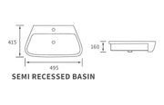 - Includes: Semi Recessed Basin