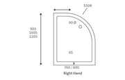 45mm Low Profile 1200x800mm Offset Quadrant Tray & Waste (RH) - White - KPSB106703
